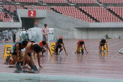 8月19日 9:15現在 女子四種競技100mHからスタートしました。